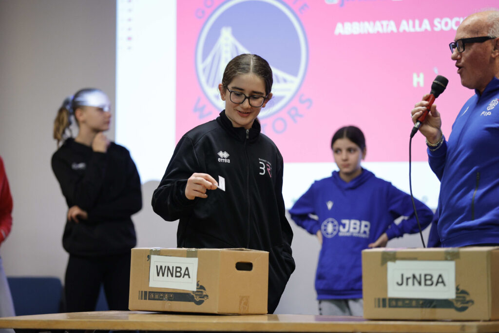 Una sala gremita ha fatto da cornice al protagonismo di ragazze e ragazzi, che hanno estratto a sorte l’abbinamento delle squadre regionali ai team NBA con entusiasmo e divertimento.